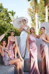 Look breathtaking in this long sleeveless cowl neck satin fitted dress with a corset back. This sultry bodice corset dress offers both comfort and style, making it the perfect choice for any special occasion. This classy yet trendy design features a corset back with an adjustable fit to accentuate curves and a draped neckline for an elegant finish.